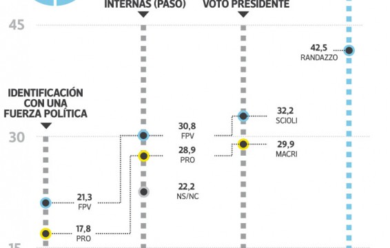 Un nuevo sondeo ratifica la caída de Massa. El líder del FR sigue lejos de Scioli y Macri, quienes se mantienen como favoritos en sus internas, aunque se acorta la distancia entre el gobernador bonaerense y Randazzo en el FPV. El dato político central que confirman la mayoría de las encuestas, también la que pública […]